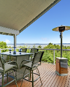 Installation of efficient outdoor electric strip heaters for year-round comfort on patios and outdoor spaces.